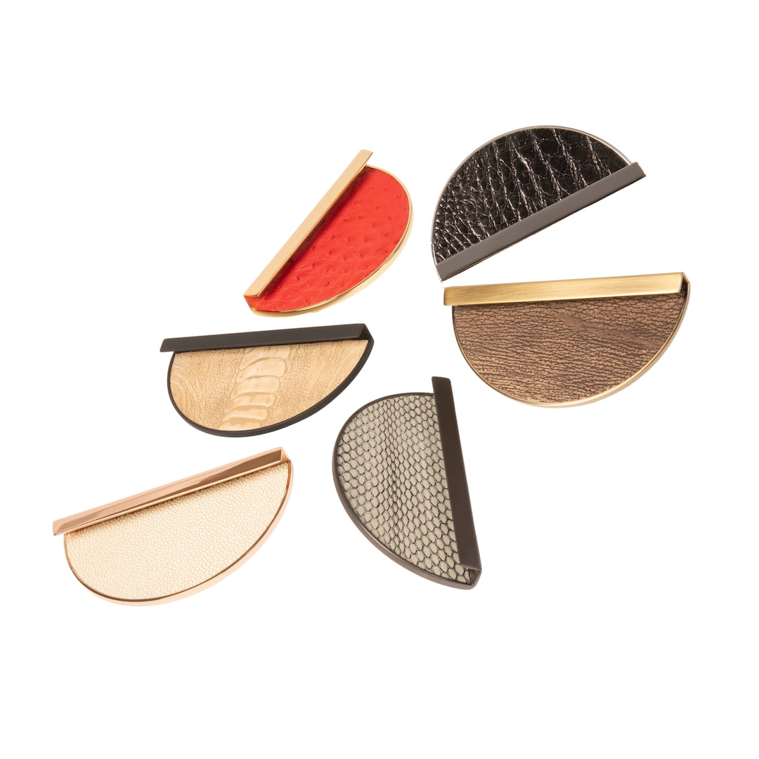 Jover Valls premium artisan pull handles are expertly handcrafted in Spain using exotic skins sourced from controlled origins and accentuated with beautifull metal detailing, offering extensive customization options to tailor them to your exact preferences.