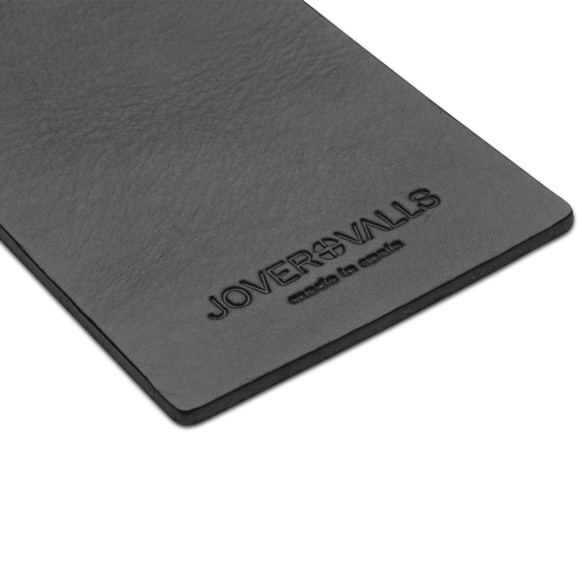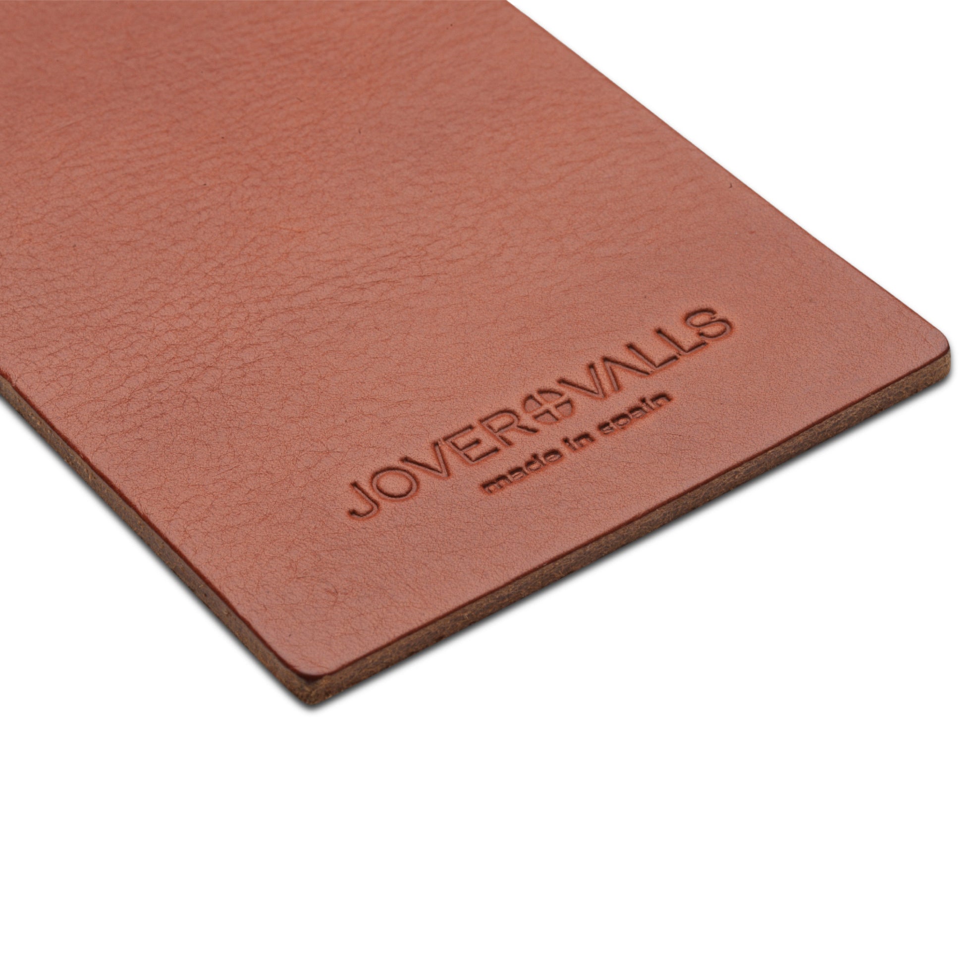 Personalization: client's own logo or initials dry embossed stamping on leather
